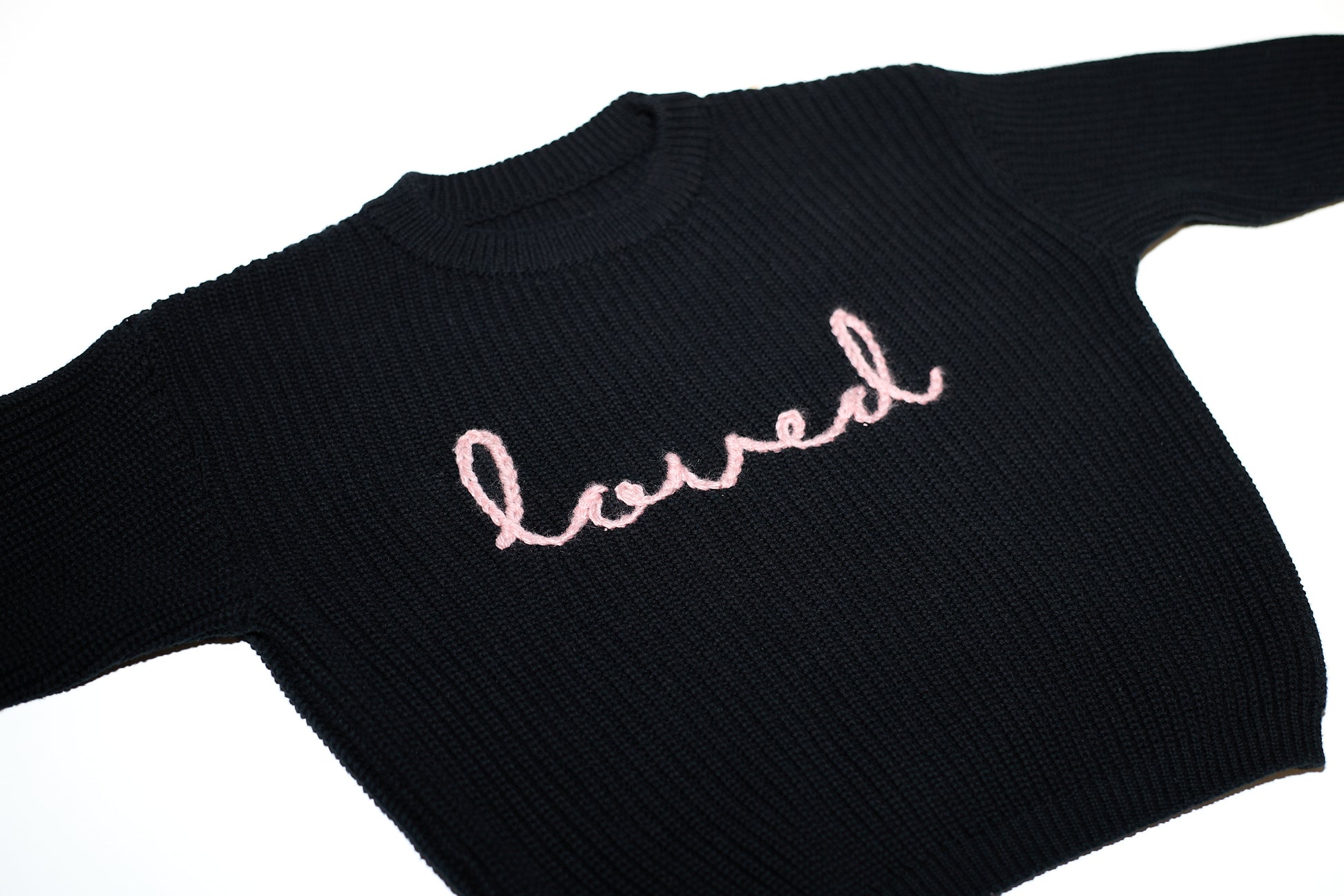 A timeless knit sweater, thoughtfully designed and finished with hand embroidery. Featuring the word loved, this piece is a simple yet meaningful reminder meant to be worn often and held onto with care.